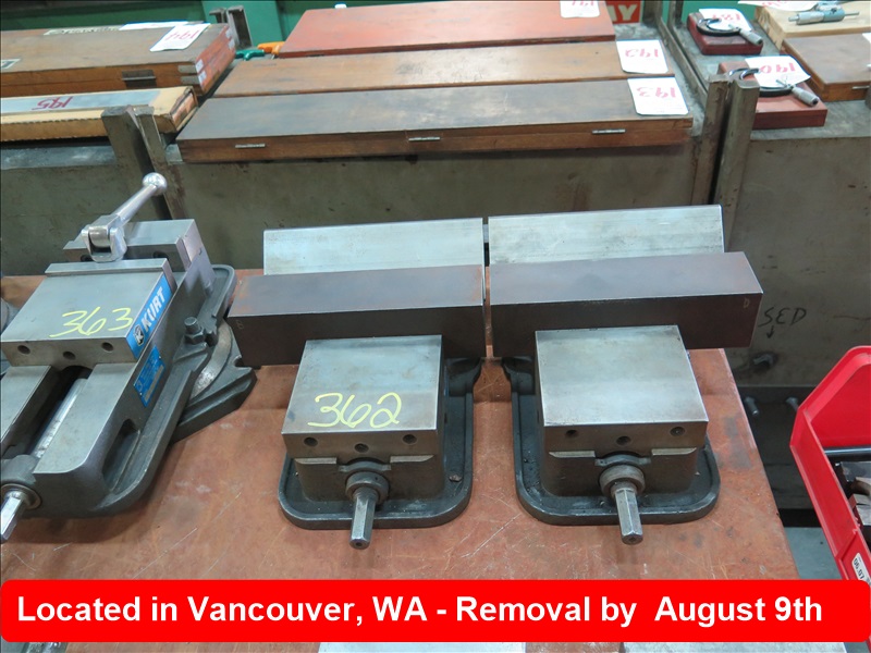 SET OF (2) KURT MACHINE VISES W/11" 45-DEGREE CLAMPING HEADS (NO HANDLES)