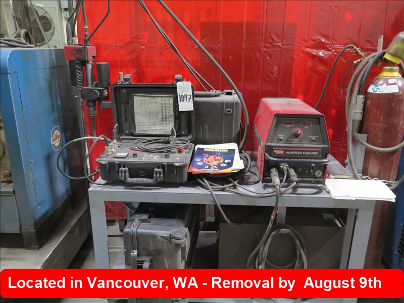 BORE WELDER, CART MOUNTED BORETECH 306-Z WIRE FEED, BORTECH 160 CONTROLS, LINCOLN INVERTEC V350-PRO POWER SUPPLY, BOTTLE, TOOL BOX W/SUPPLIES
