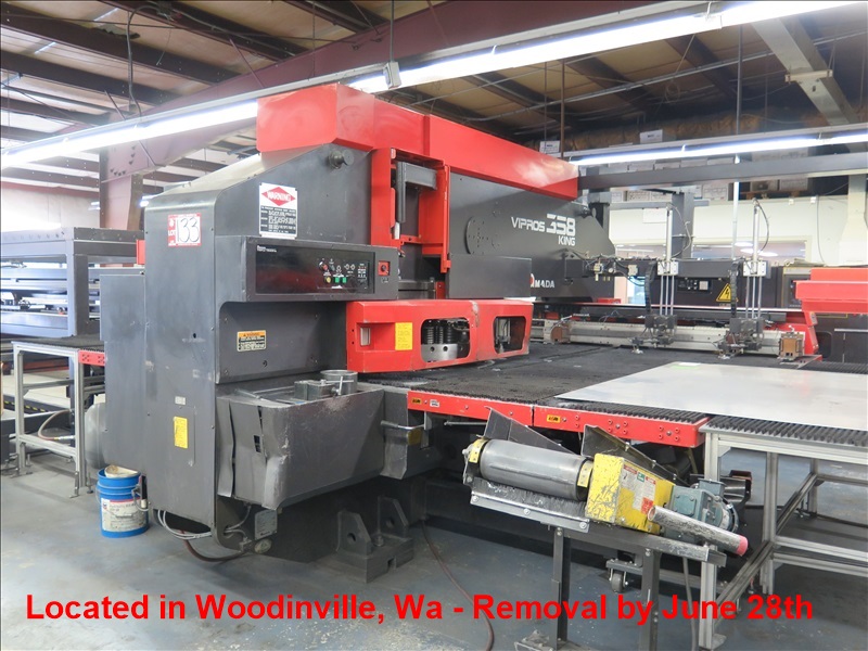 30-TON CNC TURRET PUNCH, (58) STATIONS, 5' THROAT W/TABLE, 25 KVA, AMADA 04PC POWER STATION CONTROL, 200L HYDRAULIC PUMP STATION, SBC EX 5.5 CHILLER, 8' OUTFEED CHIP CONVEYOR