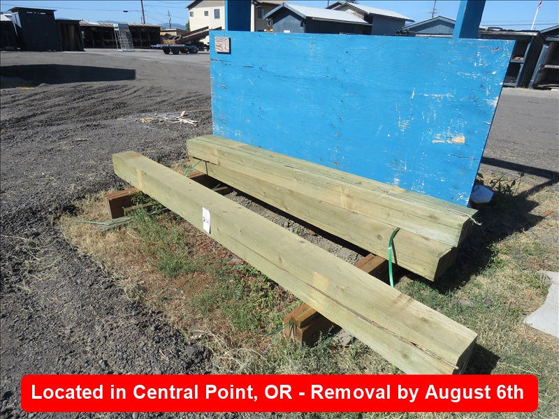 LOT, (1) 9' PRESSURE TREATED 8X8 BEAM & (4) 7' PRESSURE TREATED 6X6 BEAMS