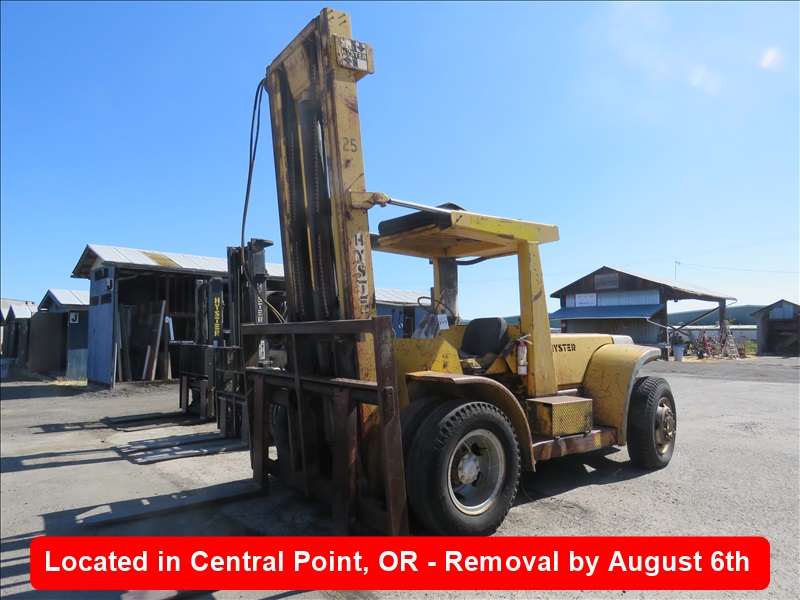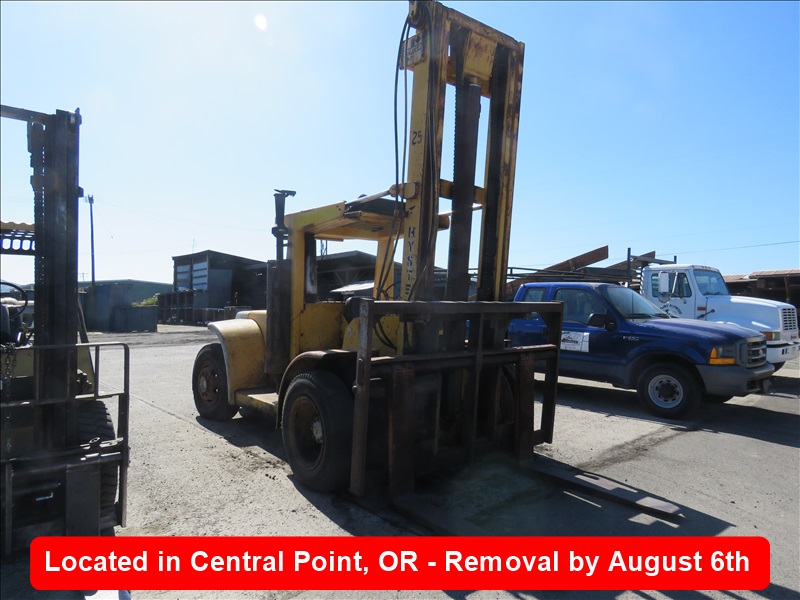 25,000 LB CAP FORKLIFT, DIESEL, 2 SPD AUTO TRANS, APPROX 212" 2-STAGE MAST W/8" X 52" FORKS, DUAL PNEUMATIC TIRES