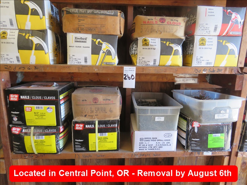 LOT, ASSORTED NAILS ON THIS SHELF (APPROX 8 CASES)