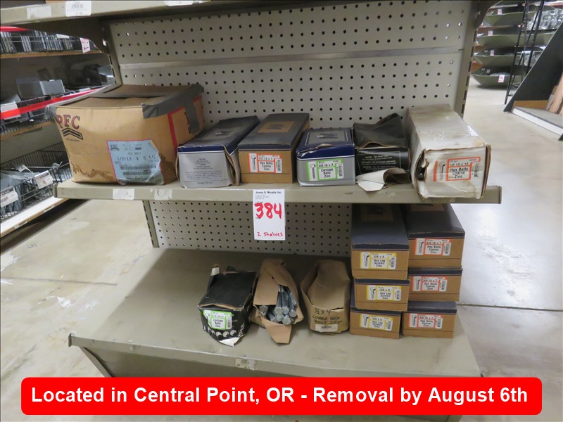 LOT, ASSORTED HARDWARE & SUPPLIES ON BOTTOM (2) SHELVES