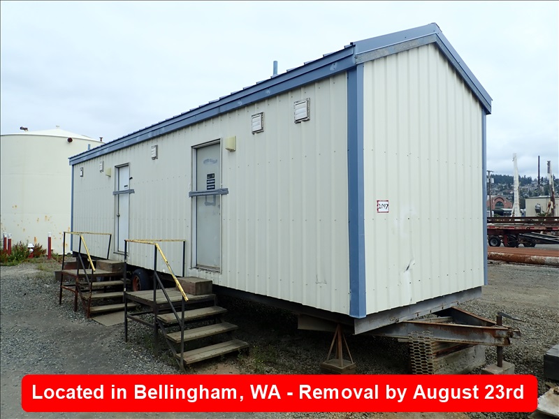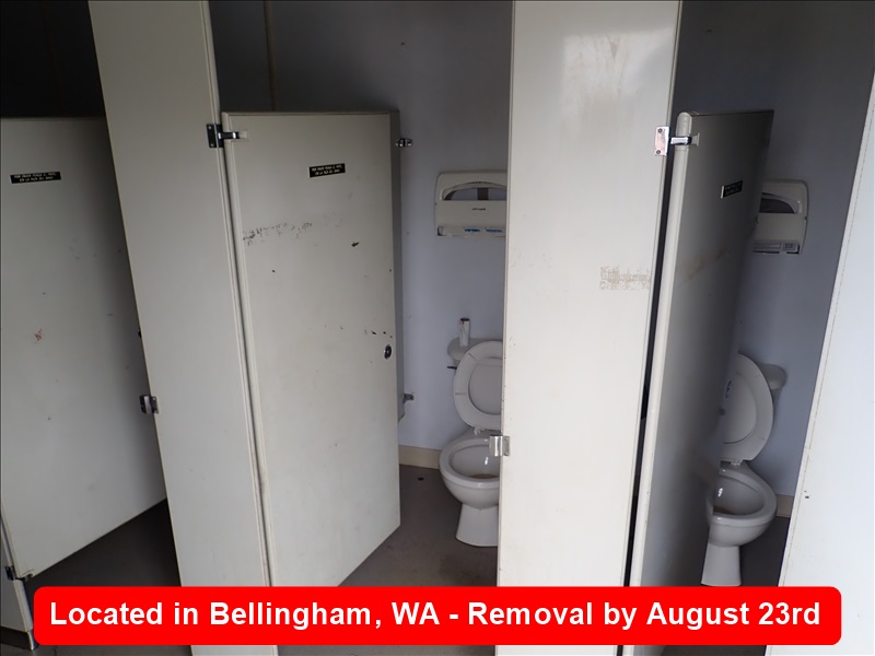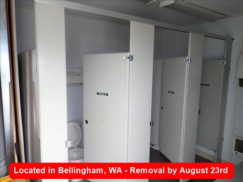 APPROX 10' X 36' (2) DOORS, RESTROOM TRAILER, (7) STALLS & SINKS (MENS ROOM, (3) STALLS & SINKS (WOMEN'S ROOM)