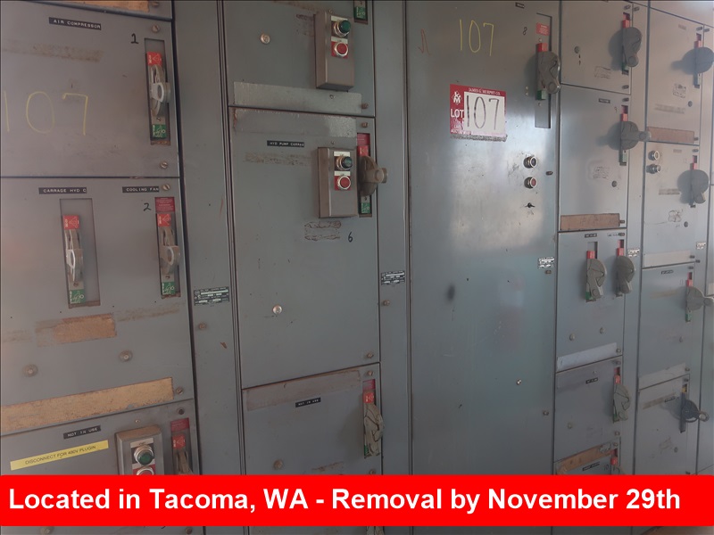 6-SECTION MCC W/(25) SWITCHES, SIZE 5 REDUCED VOLTAGE STARTER (NO WIRE OUTSIDE OF BOX)