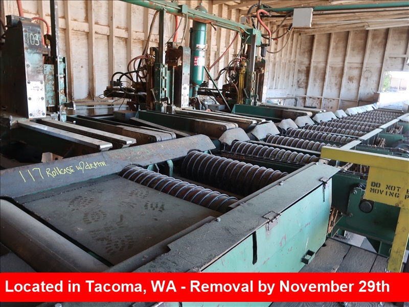 APPROX 30' POWERED OUTFEED ROLLCASE W/(12) 8-1/2" X 32" SPIRAL ROLLS & (3) SMOOTH ROLLS, APPROX 4-1/2' 4-STRAND 81X JUMP TRANSFER, (2) MOTOR TO REDUCER DRIVES, SUPPORTS & CATWALK