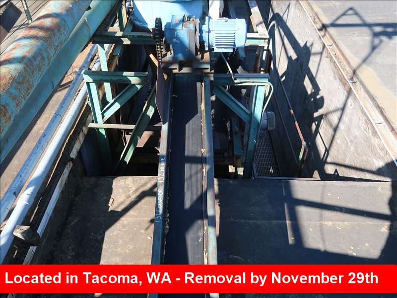 APPROX 12" X 58' BELT CONVEYOR FROM PRECISION CHIPPER TO CYCLONE, H&T DRUMS & STEEL TROUGH