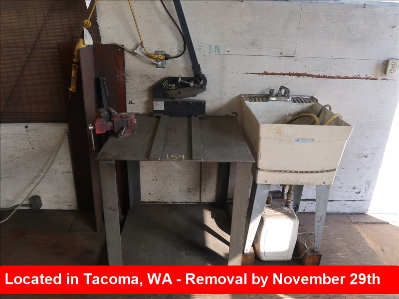 LOT, DAYTON 8" PLATE SHEAR, RIDGID 4" VISE W/STEEL TABLE