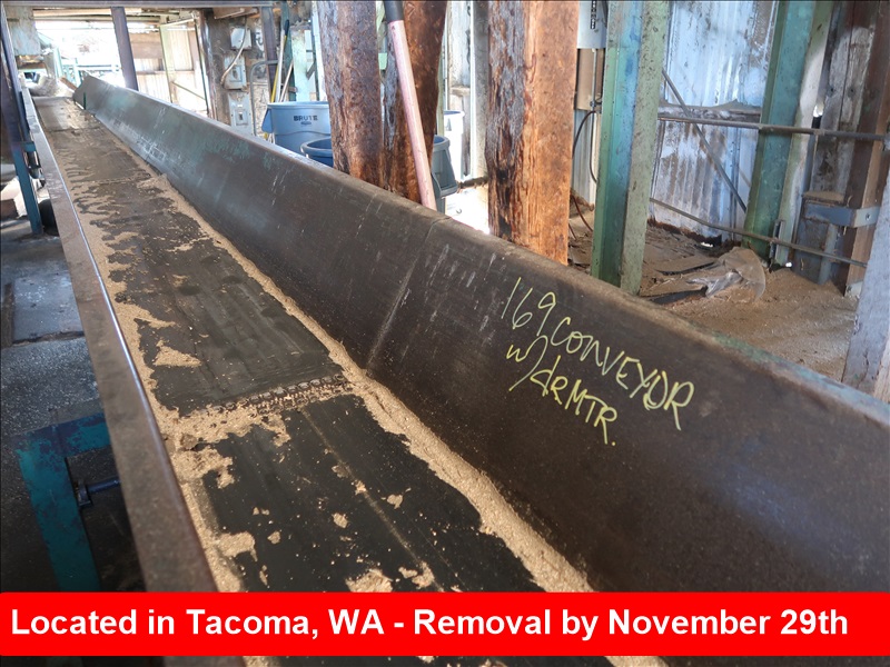 APPROX 16" X 70' CLEAN OUT BELT (1ST BELT TO CHIPPER), H&T DRUMS, STEEL TROUGH & GEARHEAD MOTOR