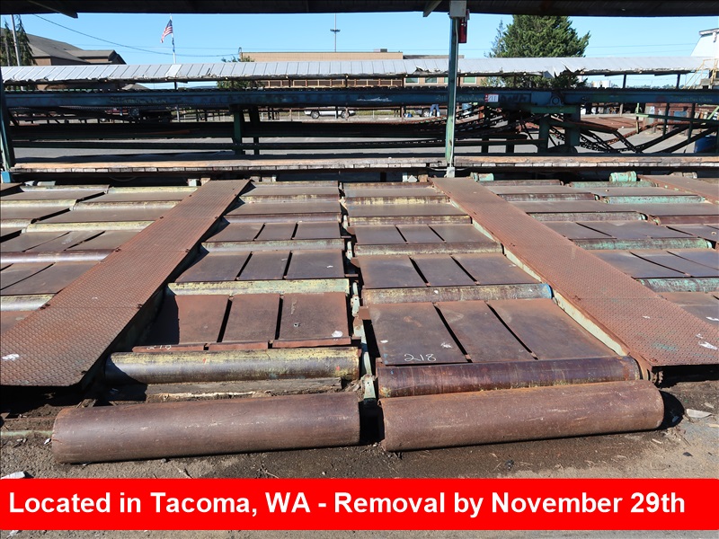 LOT, (2) APPROX 4' X 18' POWERED LUMBER ROLLCASES W/1 HP GEARHEAD MOTOR