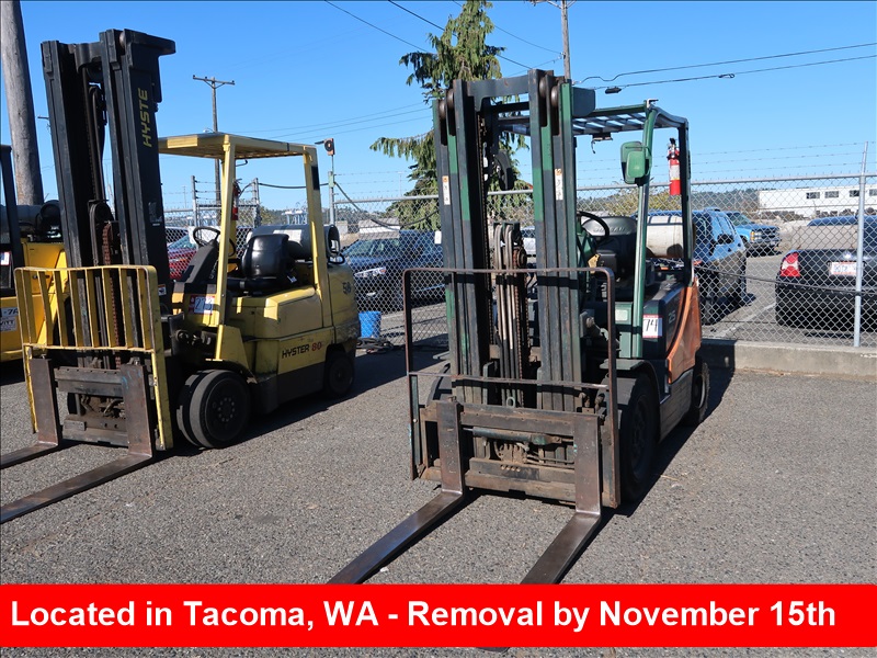 4,800 LB CAPACITY FORKLIFT, PROPANE, 184" 3-STAGE MAST W/SIDE SHIFT, 48" FORKS, SOLID TIRES, HRS:N/A