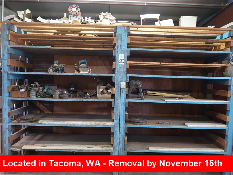 LOT, ASSORTED ITEMS ON THESE (2) WOOD SHELVES (NO SHELVES)