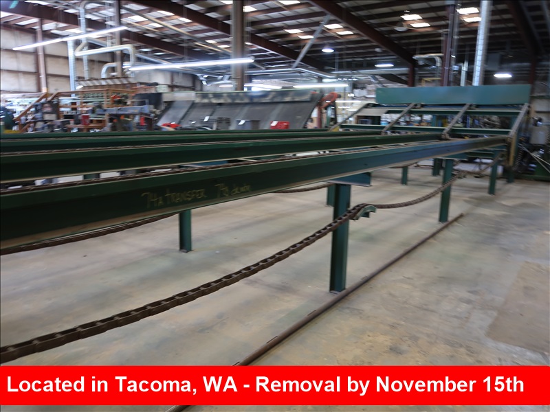 APPROX 9' 4-STRAND LINK CHAIN LUMBER LANDING TABLE TO APPROX 30' 4-STRAND 81X CHAIN TRANSFER W/H&T SHAFTS, STEEL RACES & SUPPORTS