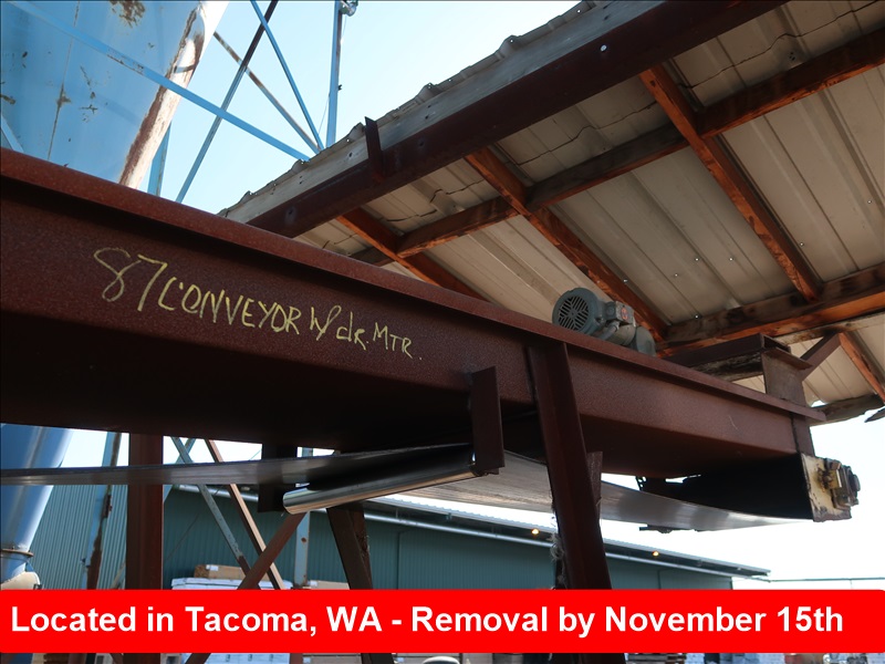 APPROX 16" X 50' CLEAN OUT BELT CONVEYOR, H&T DRUMS, STEEL TROUGH & SUPPORTS W/GEARHEAD DRIVE, STEEL COVER & HOSE REEL
