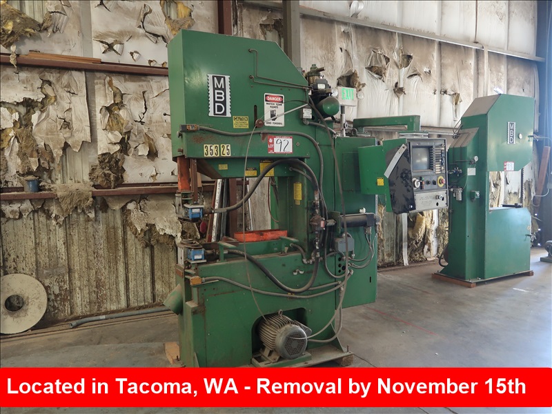 36" AUTOMATIC PROFILE VERTICAL BANDSAW W/MOD# 3000CNC BANDSAWING SYSTEM, 15 HP/1,785 RPM MOTOR, (3) ALLEN BRADLEY AC SERVO CONTROLLERS