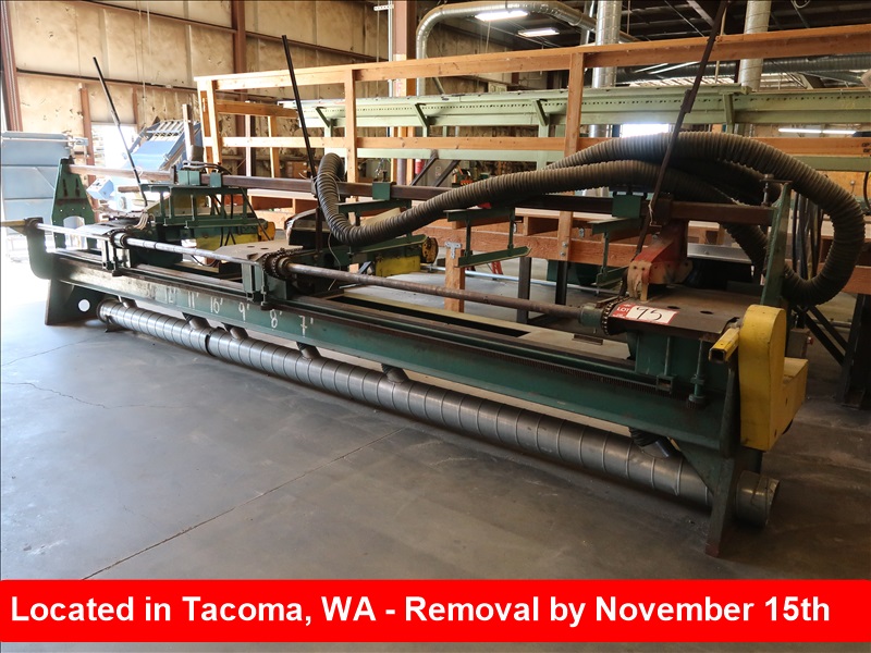 CUSTOM BUILT 16' 3-SAW PRECISION END TRIMMER BY LOT 71 W/12" SAWS & (3) 5' FEED THRU CHAIN TRANSFERS
