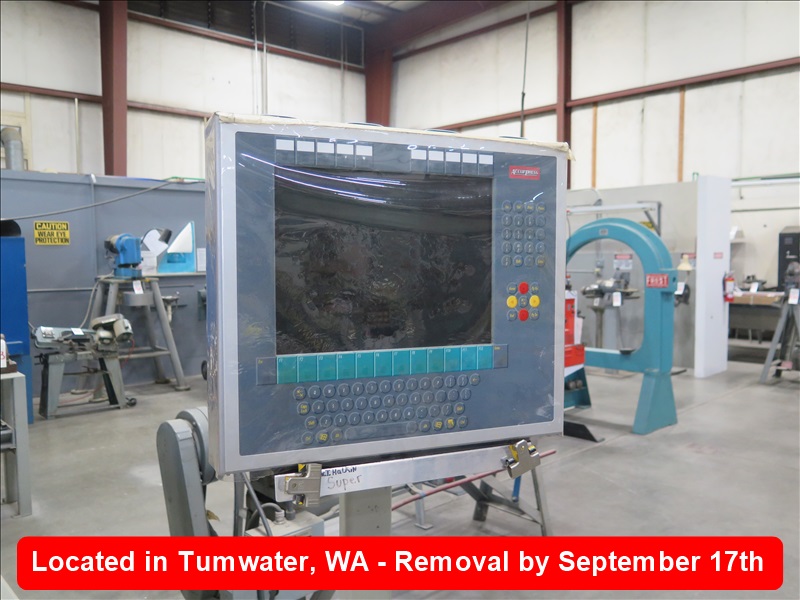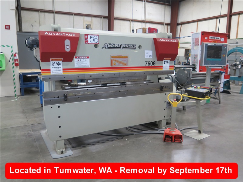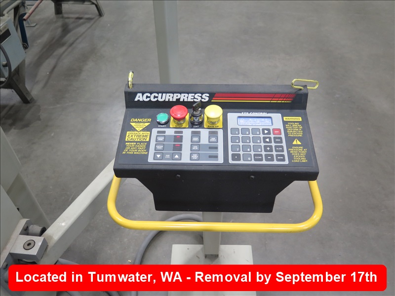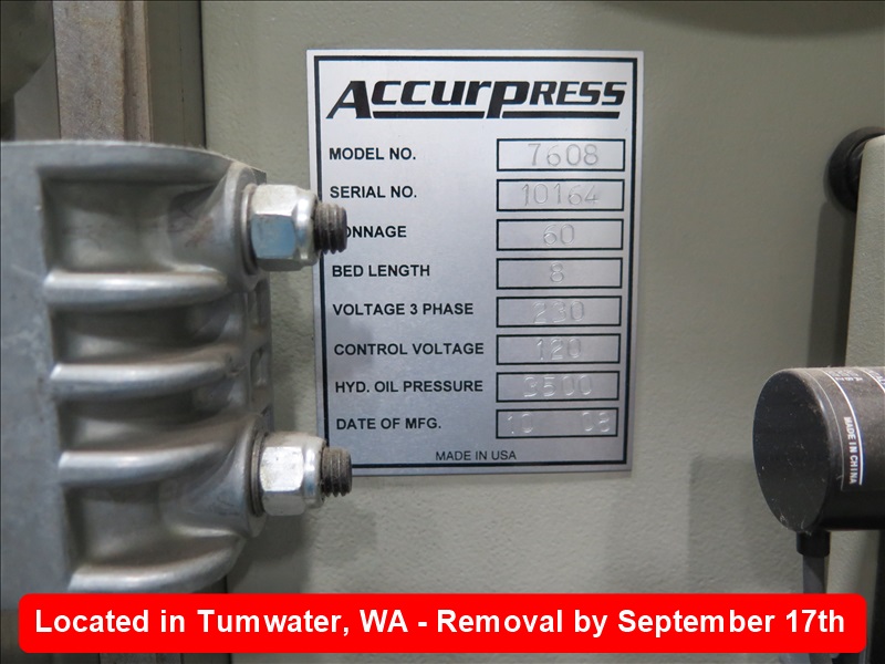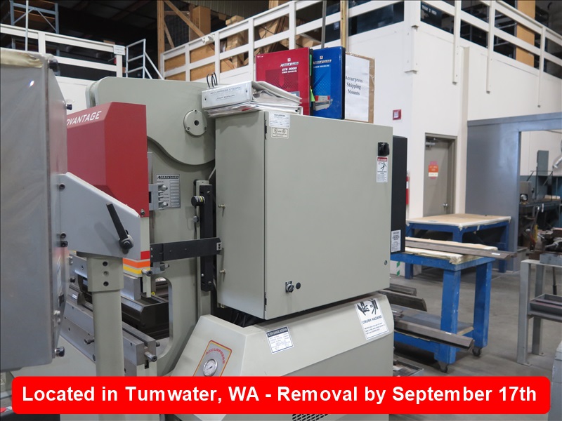 60-TON X 8' CNC HYDRAULIC PRESS BRAKE, ADVANTAGE SYSTEM, POWER BACK GAUGE, ETS 3000 CONTROLS, 230V, 3 PHASE, HOUR METER READS: 275