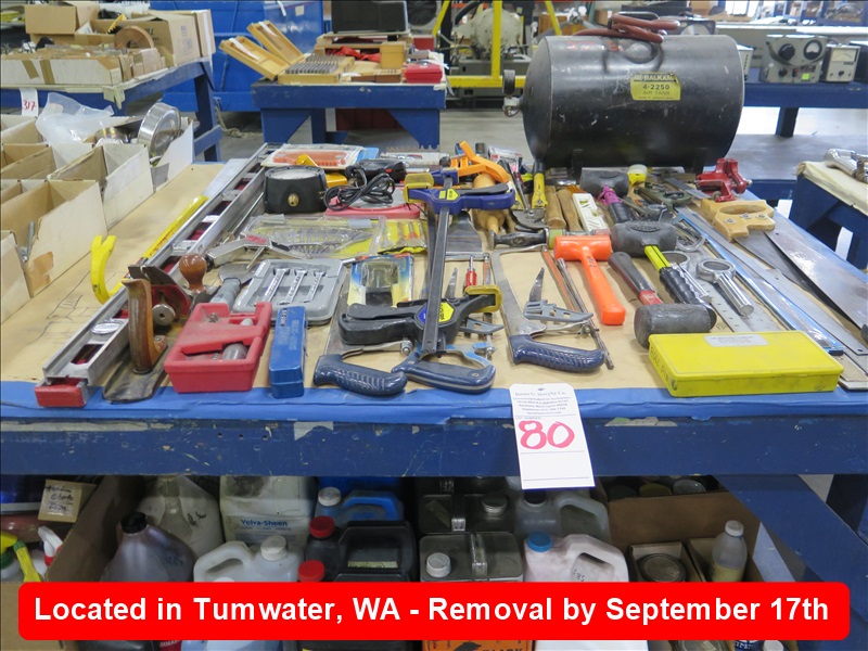 LOT, MISC LOOSE TOOLS AND/OR SUPPLIES ON THIS SECTION OF BENCH