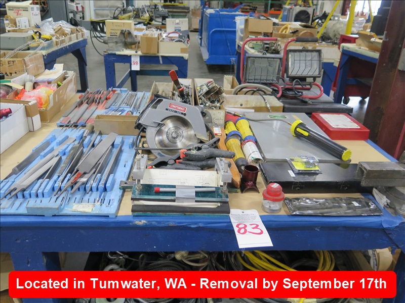 LOT, MISC LOOSE TOOLS AND/OR SUPPLIES ON THIS SECTION OF BENCH