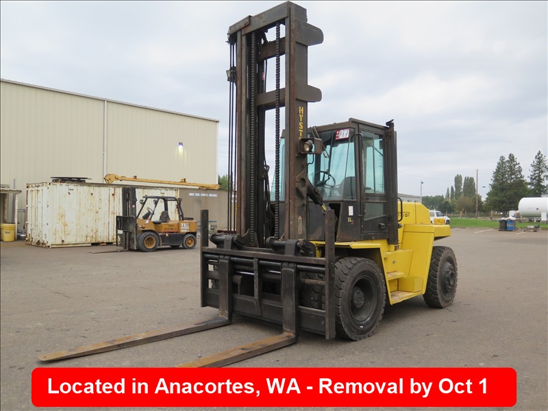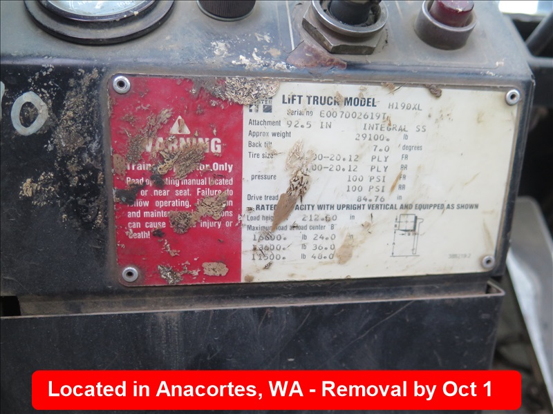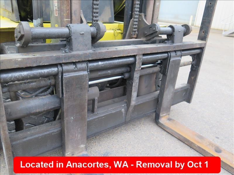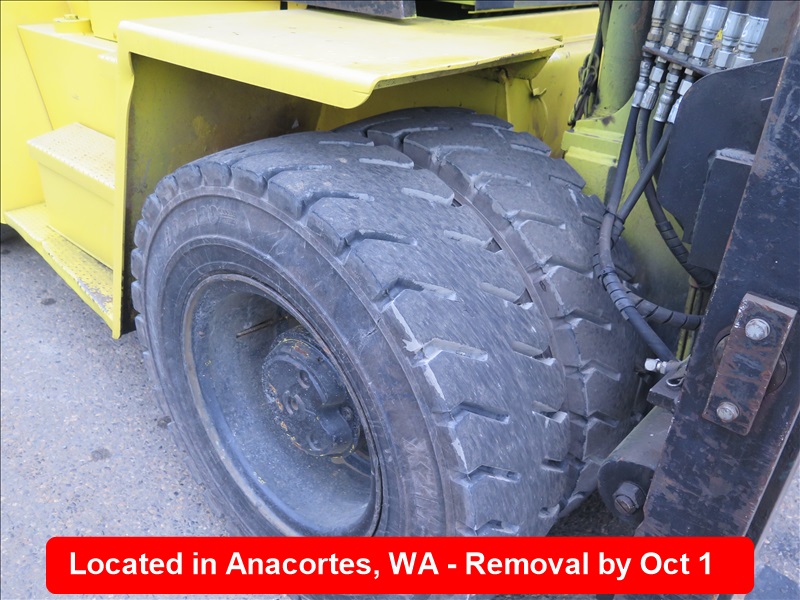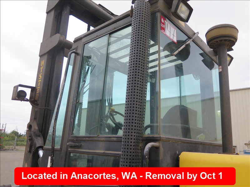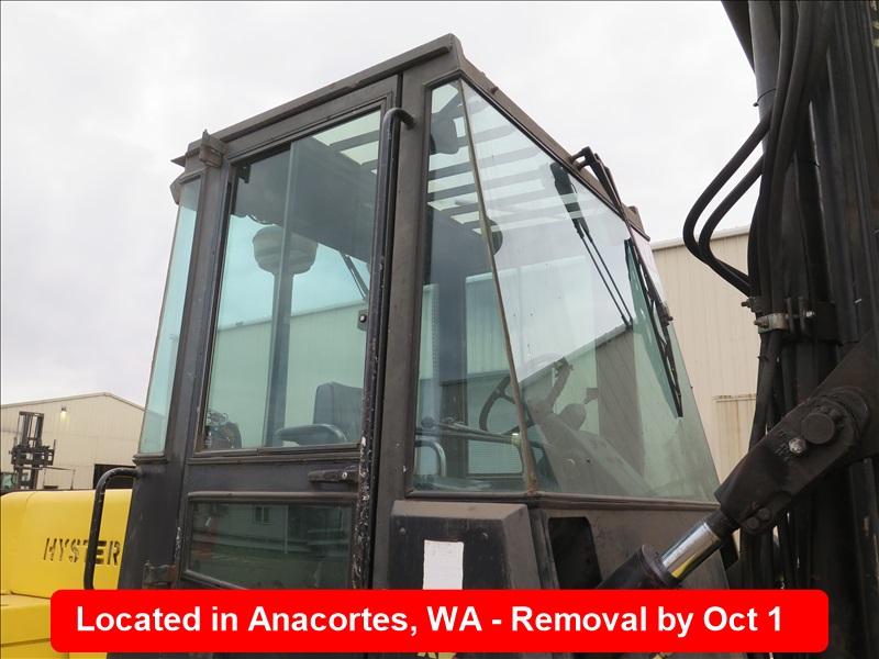 16,600 LB DUAL CUSHION TIRE FORKLIFT, 212" 2-STAGE MAST, SIDE SHIFT, FORK POSITIONER, PERKINS DIESEL, ECLOSED CAB, GLASS 100%, A/B, HOUR METER READS: 9,378