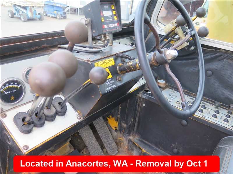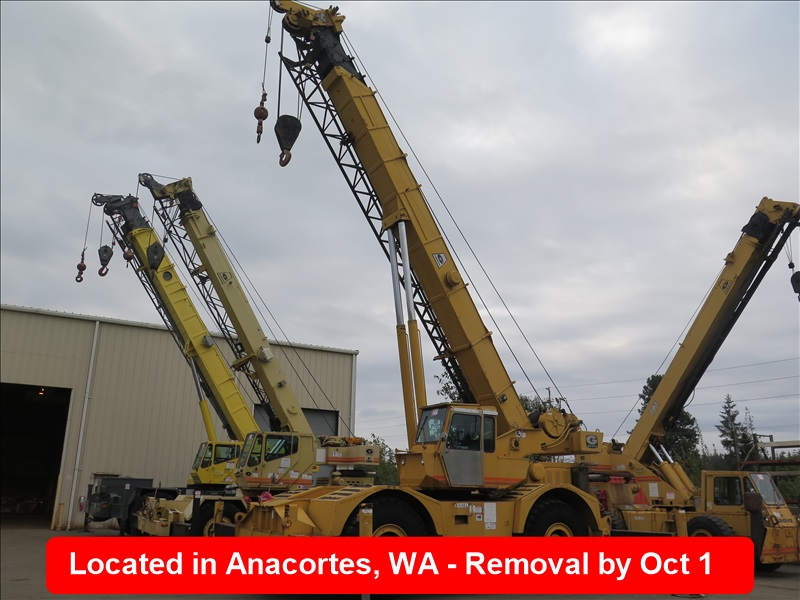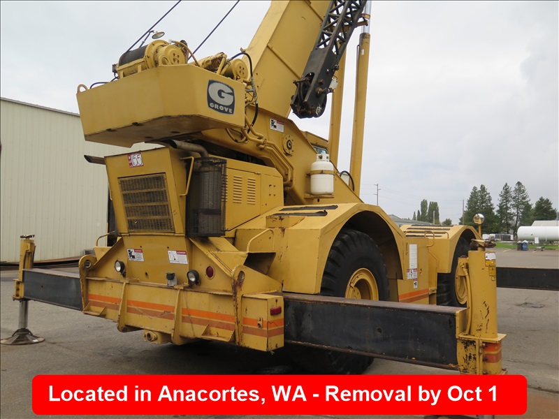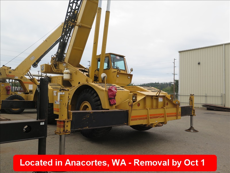 35-TON HYDRAULIC ROUGH TERRAIN CRANE, 104' 2-SECTION BOOM, LOADWISE 316 LOAD MOMENT INDICATOR, 3208 CAT DIESEL, 32' JIB, OUTRIGGERS, ANTI-TWO BLOCK SYSTEM, 26.5-25, HOUR METER READS: 5,085