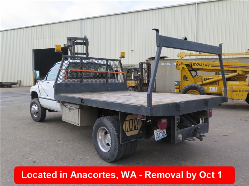 10' FLATBED, CUMMINS TURBO DIESEL, 5 SPD, A/C, ODOMETER READS: 272,127