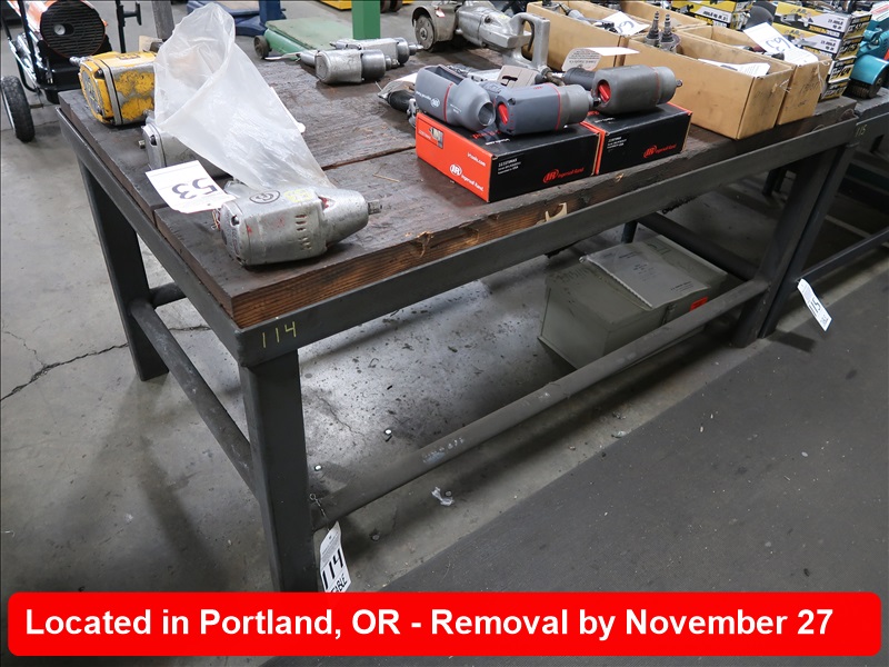APPROX 40"W X 65"L STEEL FRAMED WOOD TOP TABLE