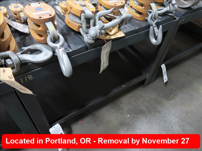 APPROX 40"W X 60"L STEEL FRAMED WOOD TOP TABLE