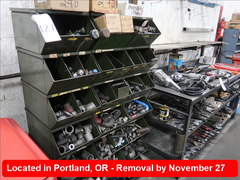 LOT, (21) BINS W/ASSORTED NUTS, BOLTS & PARTS