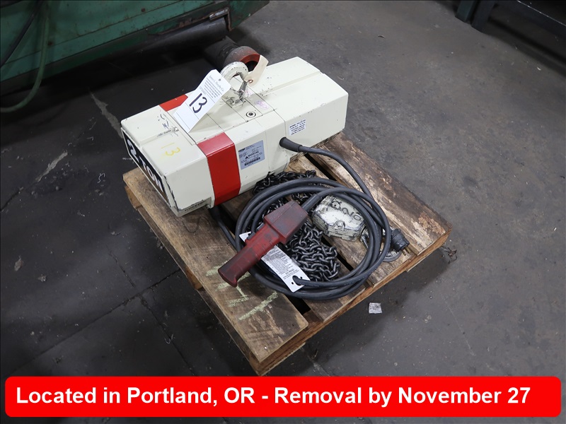2-TON ELECTRIC CHAIN HOIST W/PENDANT CONTROLLER, 115/230V (RECONDITIONED 7/15/2019)