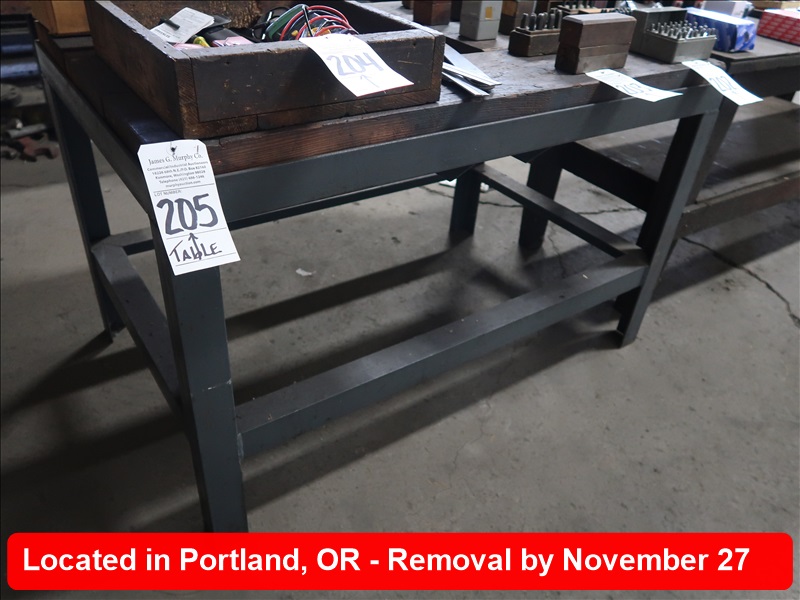 APPROX 30" X 48" STEEL FRAMED WOOD TOP TABLE (MUST WAIT UNTIL EMPTY TO REMOVE)