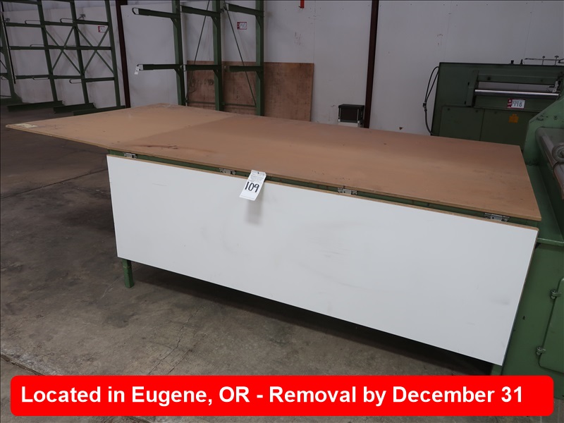 APPROX 61-1/2"-86-1/2"W X 84-1/2"-118-1/2"L STEEL FRAMED WOOD TOP TABLE (FOR LOT 105)