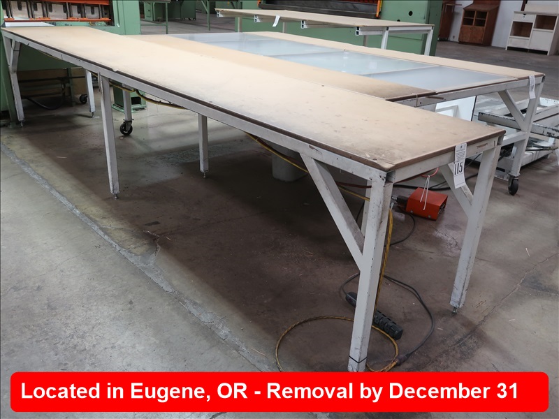 APPROX 30" X 175" STEEL FRAMED WOOD TOP TABLE (FOR LOT 112)