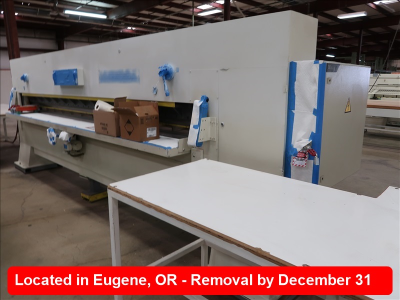 14' HYDRAULIC ACTUATED GUILLOTINE STYLE VENEER CLIPPER W/PARALLEL FENCE, 4,500MM X 80MM CAPACITIES, TOUCHSCREEN CONTROLS, SAFETY CURTAINS