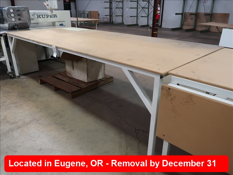 APPROX 62-1/2" X 145" STEEL FRAMED WOOD TOP TABLE (FOR LOT 123)