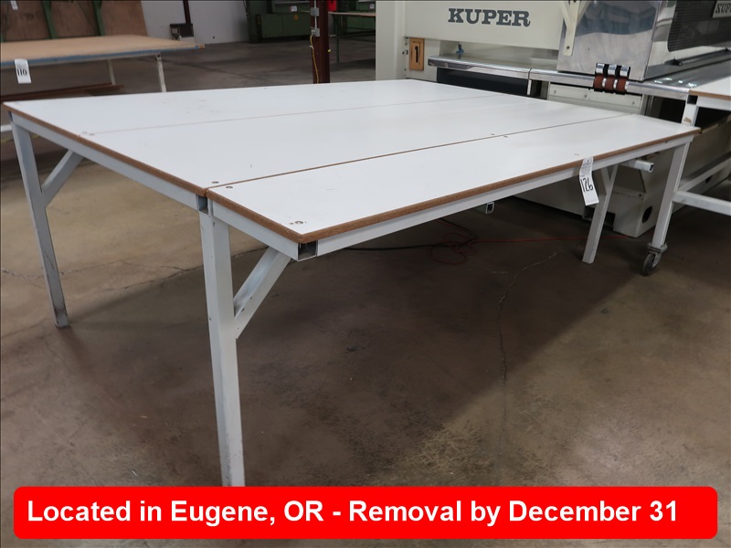 APPROX 58"-72" X 145" STEEL FRAMED WOOD TOP TABLE (FOR LOT 123)