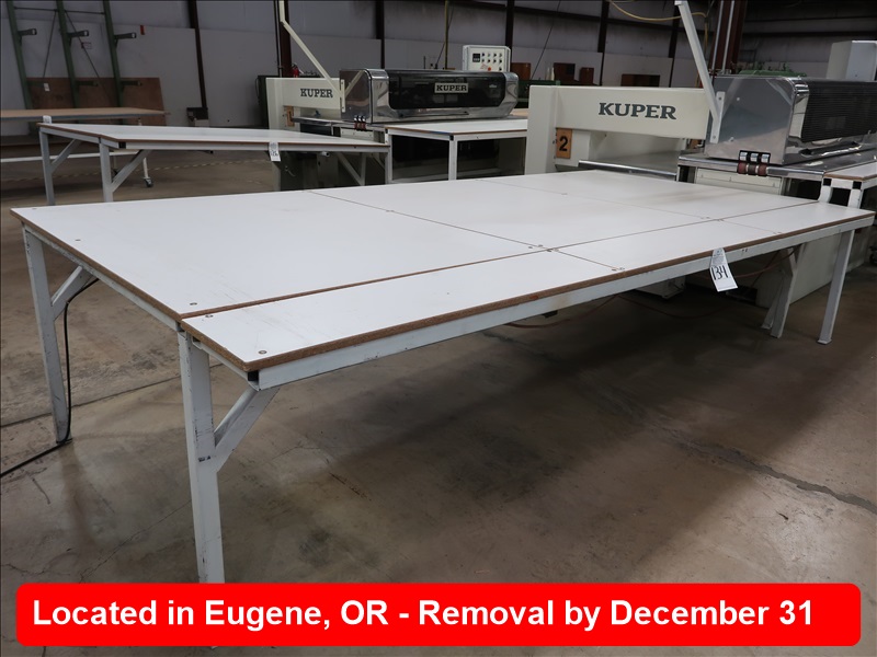 APPROX 60"-72" X 145" STEEL FRAMED WOOD TOP TABLE (FOR LOT 130)
