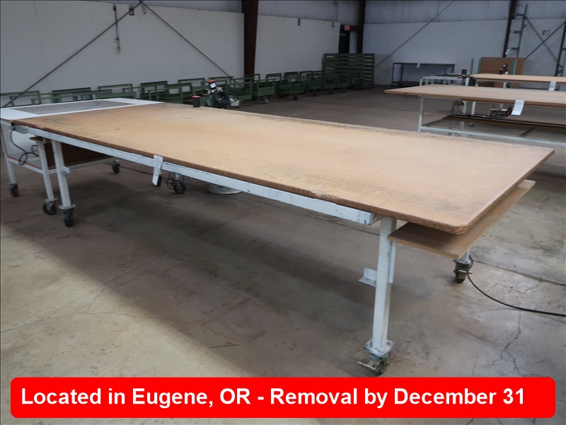 APPROX 61" X 145" STEEL FRAMED WOOD TOP TABLE (FOR LOT 130)