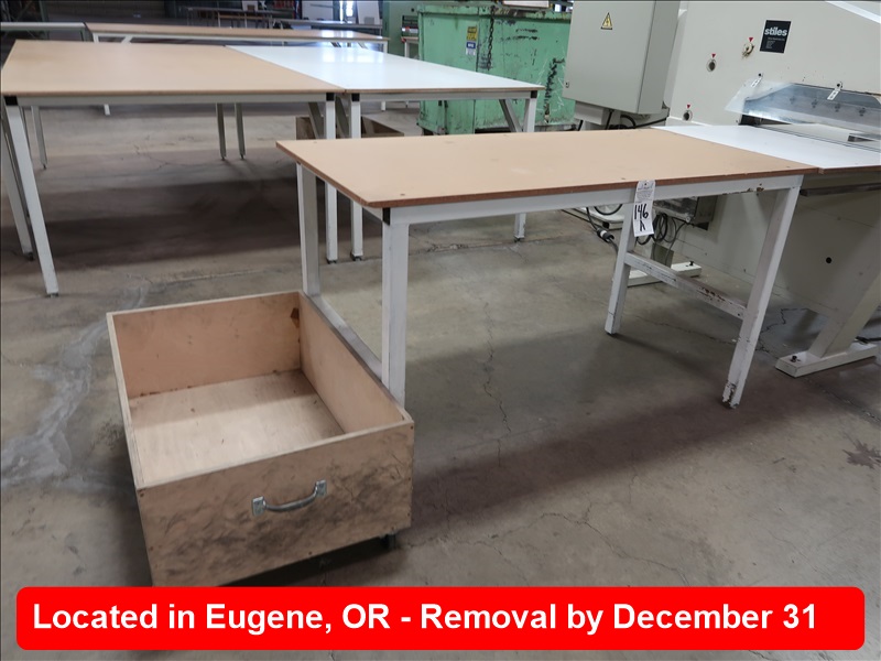 APPROX 31" X 64" STEEL FRAMED WOOD TOP TABLE (FOR LOT 145)