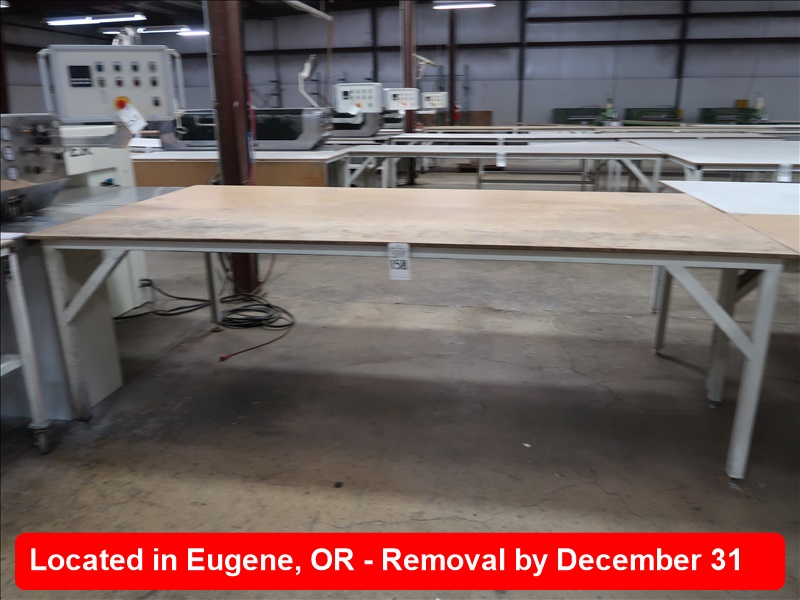 APPROX 61" X 120" STEEL FRAMED WOOD TOP TABLE (FOR LOT 157)
