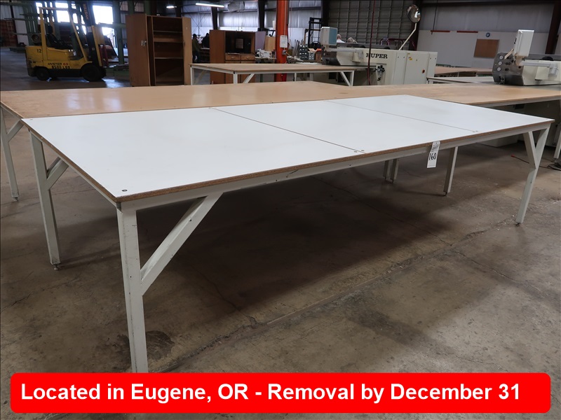 APPROX 61" X 144" STEEL FRAMED WOOD TOP TABLE (FOR LOT 157)