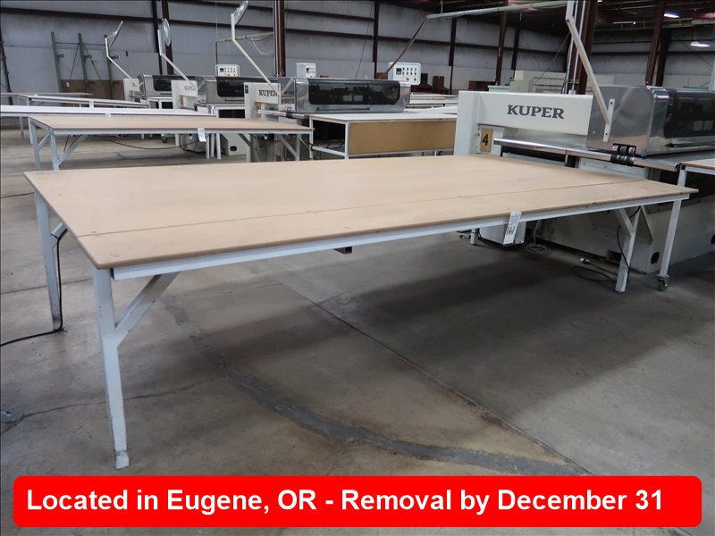 APPROX 61"-75" X 145" STEEL FRAMED WOOD TOP TABLE (FOR LOT 157)