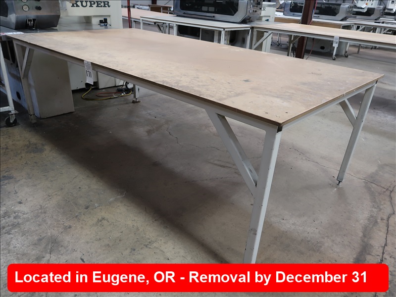 APPROX 61" X 121" STEEL FRAMED WOOD TOP TABLE (FOR LOT 170)