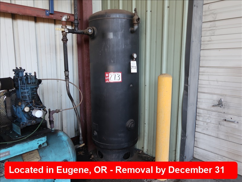 APPROX 30" X 72" AIR RECEIVER TANK, 125 PSI, PIPING TO BRAIDED LINE ON LOT 272 (NO AIR LINE TO BUILDING)