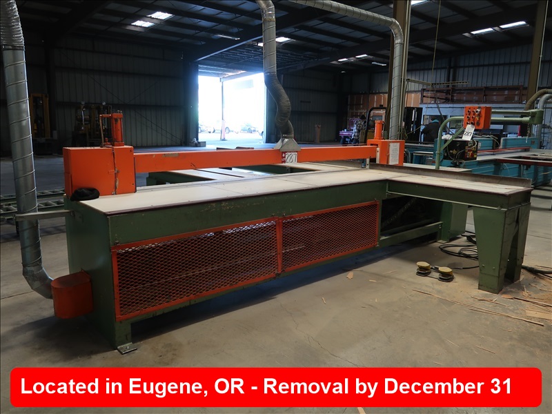 AUTOMATIC HORIZONTAL PANEL/BEAM SAW, APPROX 120" LENGTH OF CUT, APPROX 3" THICKNESS OF CUT, SWING ARM CONTROLS, (3) IN & OUTFEED TABLES