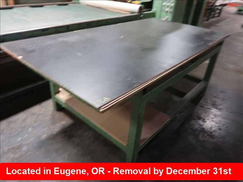 APPROX 48" X 72" STEEL TABLE W/WOOD TOP