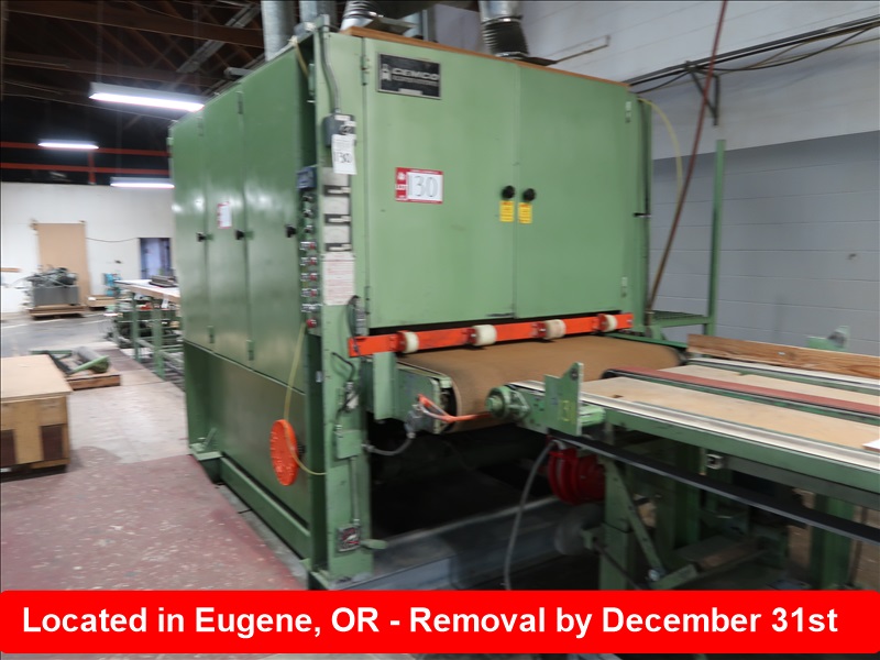 48" SANDER, 3-HEAD W/(1) 75 HP & (2) 50 HP MOTORS, 51" X 120" FEED THRU BELT, BELT TRACKING, MARKED SPARE 2ND HEAD, PARTS & TABLE (PIPING TO GATE)