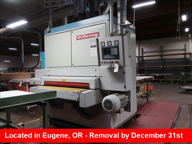 48" SANDER, 2-HEAD W/16 HP MOTORS, SEGMENTED PAD, VACUUM TABLE, BELT TRACKING, SWING ARM CONTROLS, 53" X 90" FEED THRU BELT, IN & OUTFEED, FLEX PIPE ONLY, SPARE BELTS & WOOD WALKWAYS