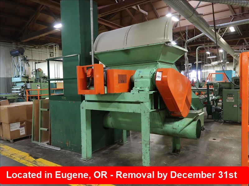 SHREDDER W/30 HP MOTOR TO REDUCER, TOP INFEED, BOTTOM DISCHARGE W/MARKED DUCTING BOX