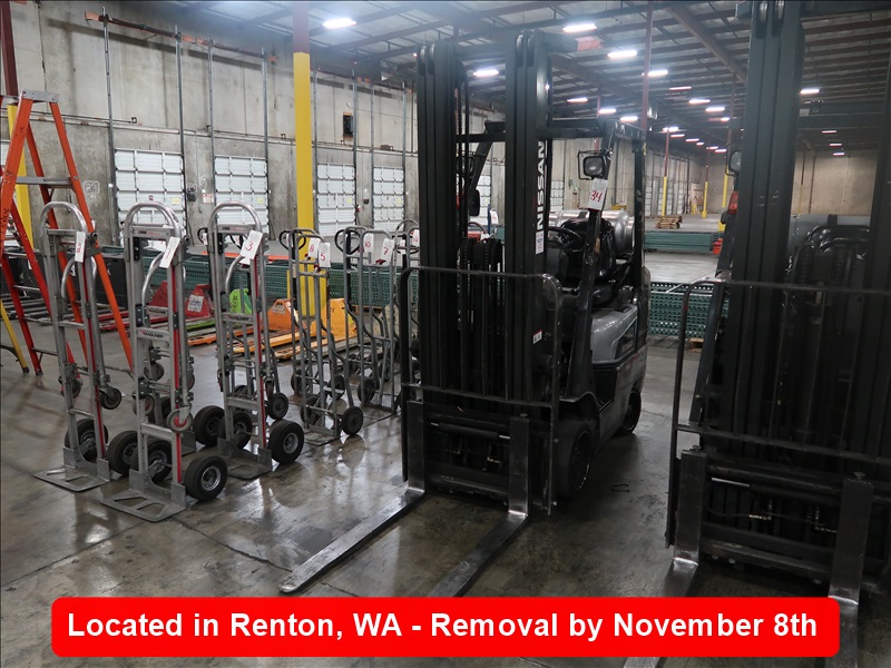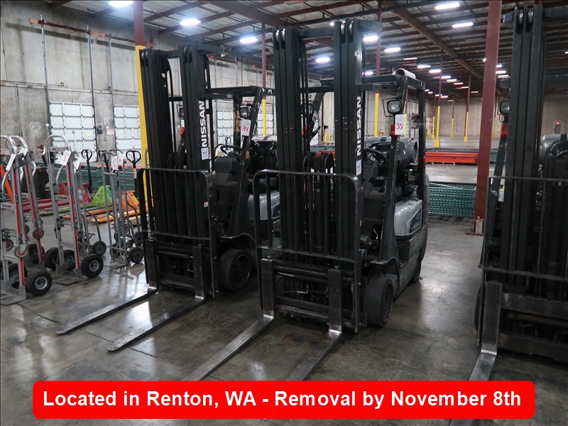 **LOT 34 THE NISSAN FORKLIFT STAYS UNTIL 4 PM, THURSDAY, NOVEMBER 7TH**